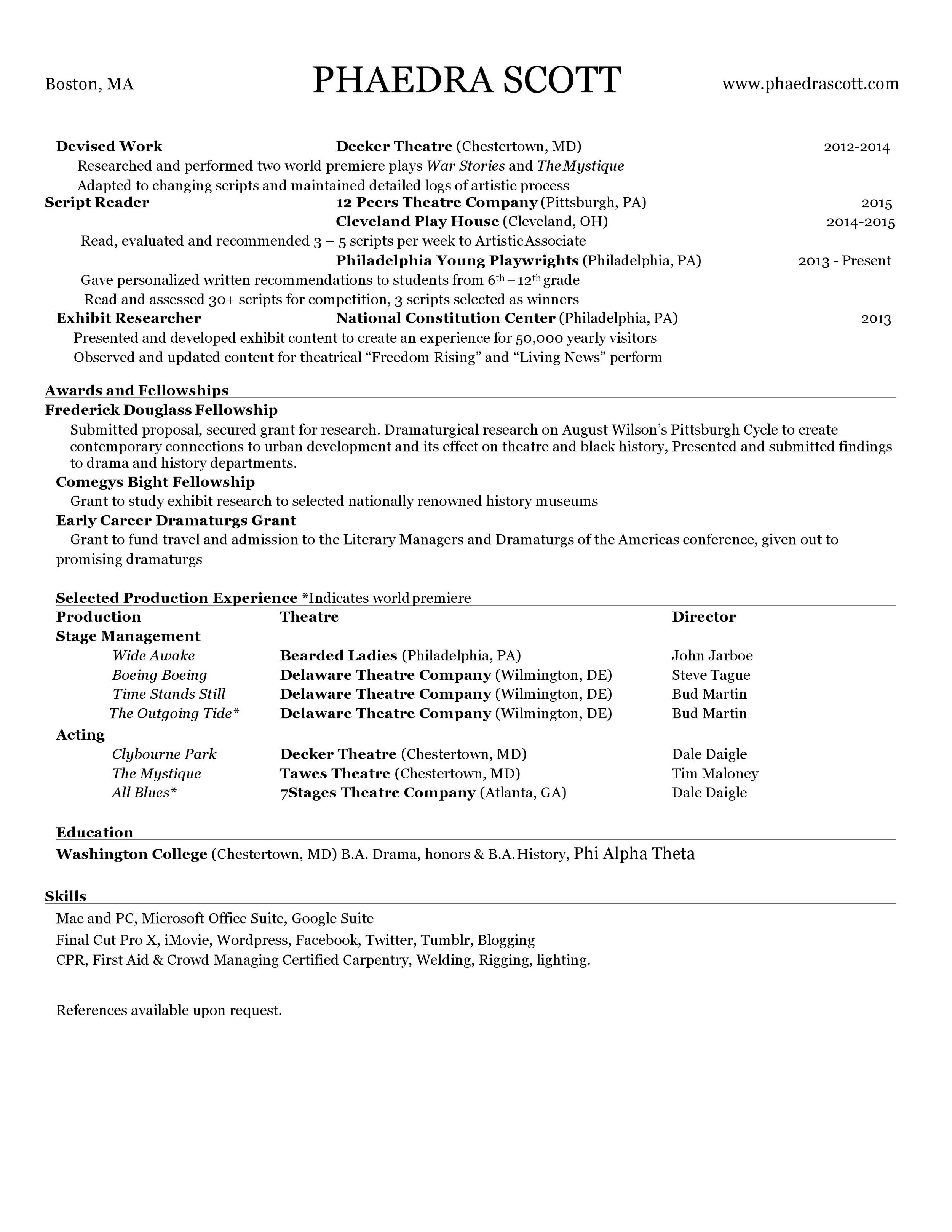 Phaedra is available for directing, private script consulting, production dramaturgy and writing. For inquiries, please contact Phaedra at: